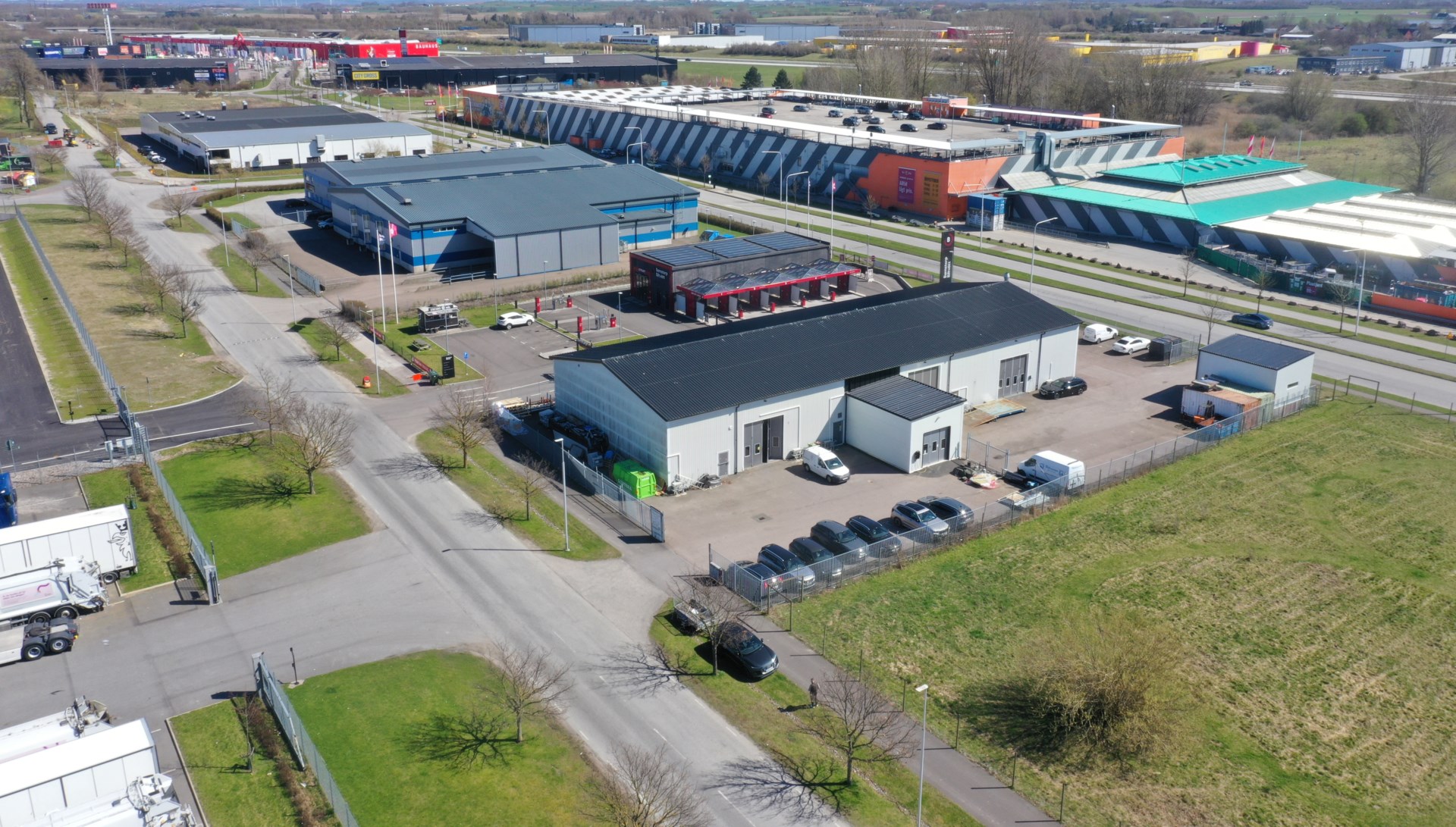 Fastigheten är belägen inom ett inhägnat område och ligger i Stora Bernstorps etablerade handelsområde – ett strategiskt läge med direkt anslutning till motorväg, vilket ger utmärkta kommunikationer och enkel tillgänglighet för både transporter och personal.