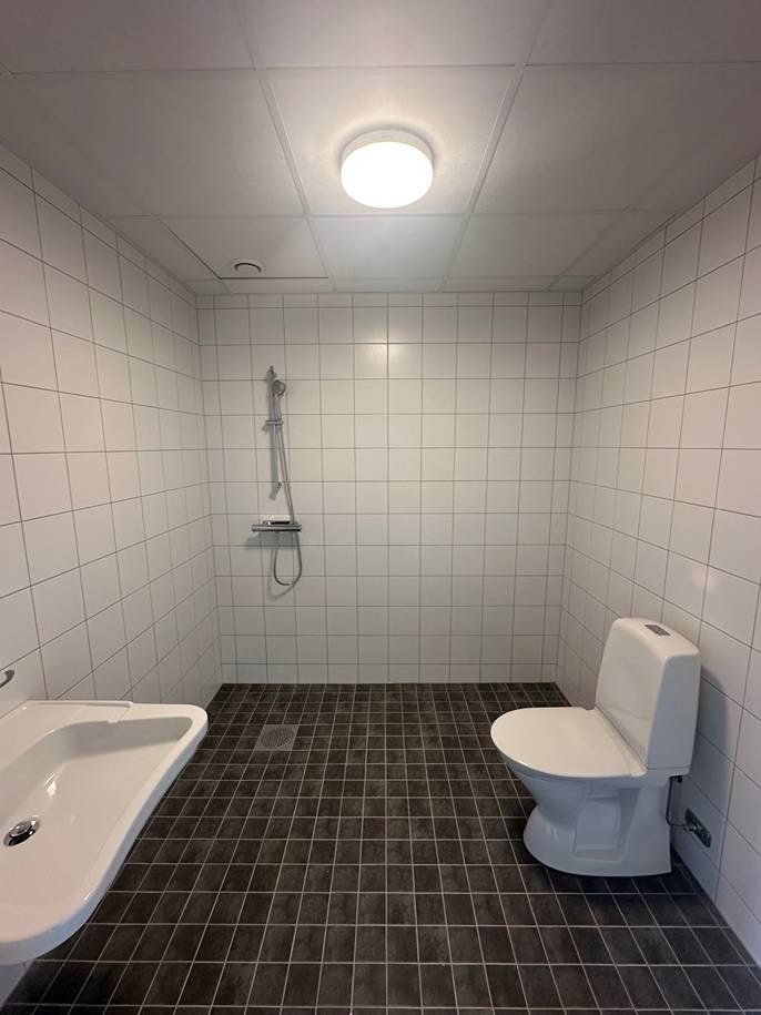 På plan 2 kommer är det helkaklad WC, pentry samt golv. Fiber är framdraget till respektive lokal.