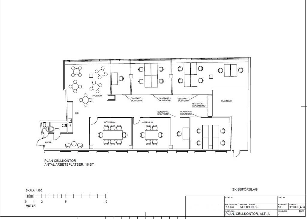 Lokalen kan fungera som kontor, läkar- eller tandläkarmottagning eller dylikt. Omomsad verksamhet kan godkännas.