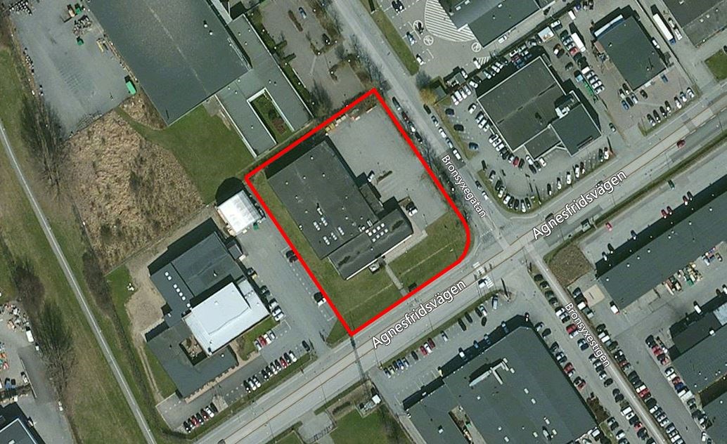 Totala fastighetsytan uppgår till 6760 kvm. Grönytorna är möjliga att hårdgöra med exempelvis asfalt för uppställning eller parkeringsplatser.