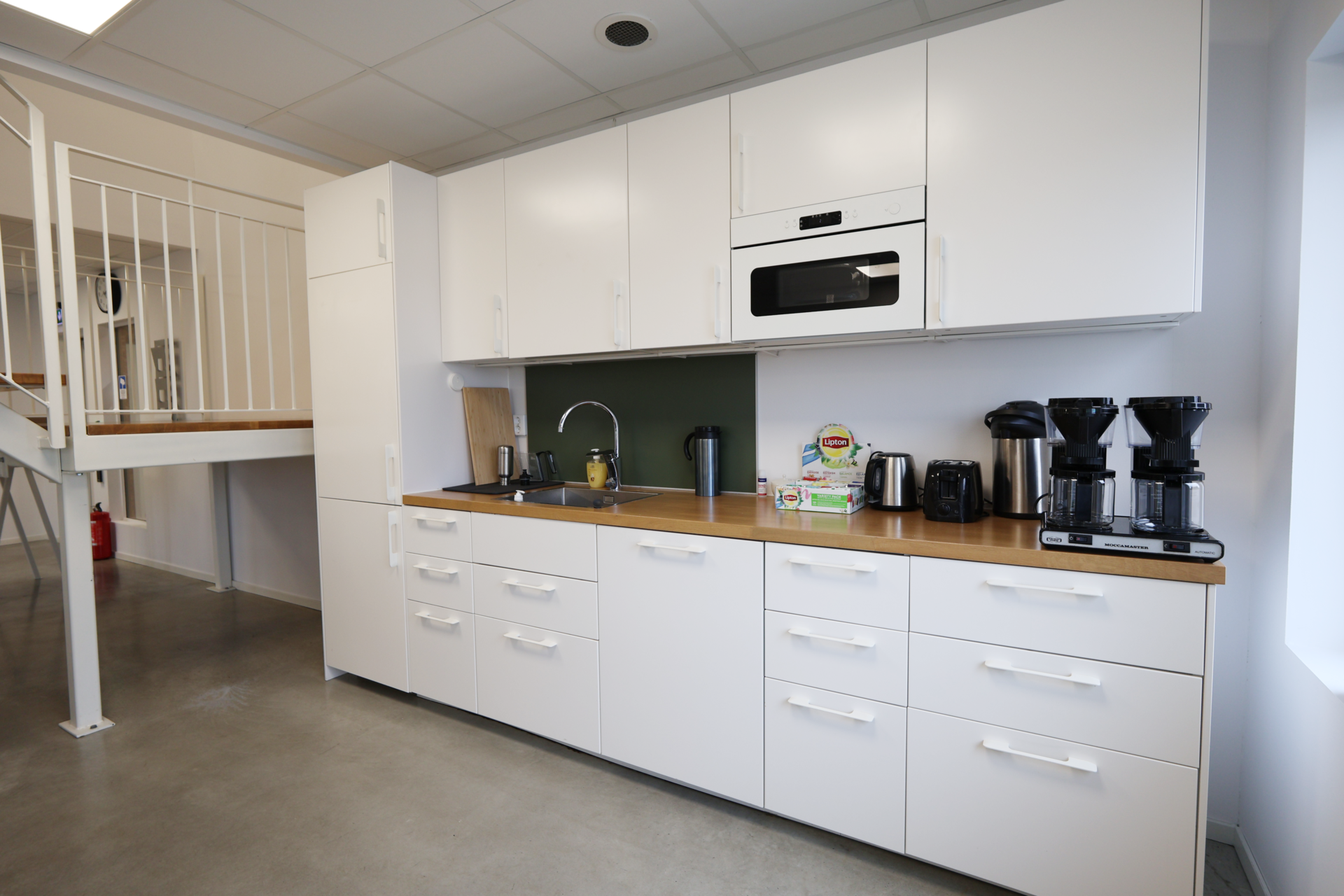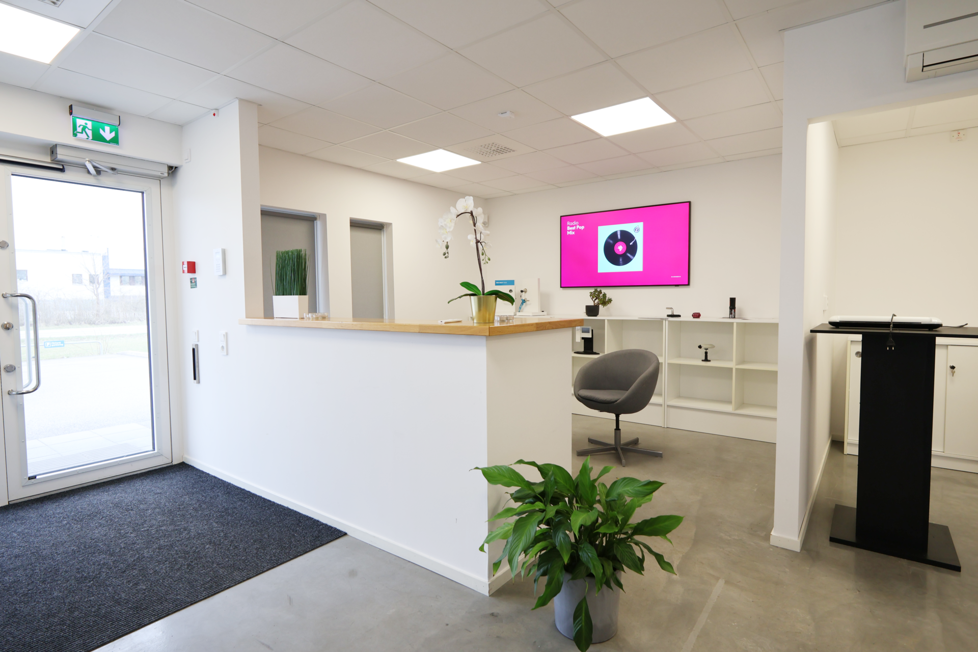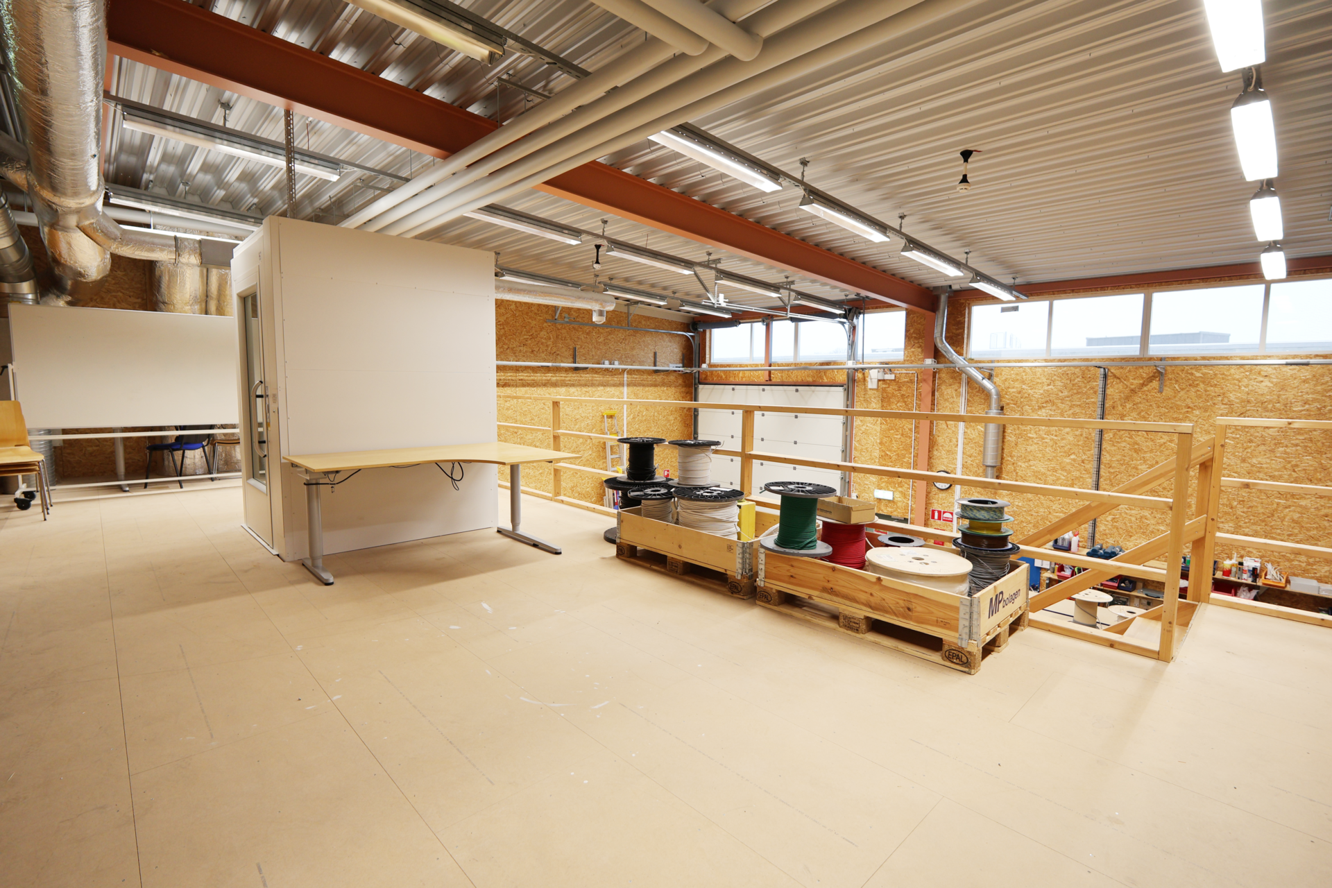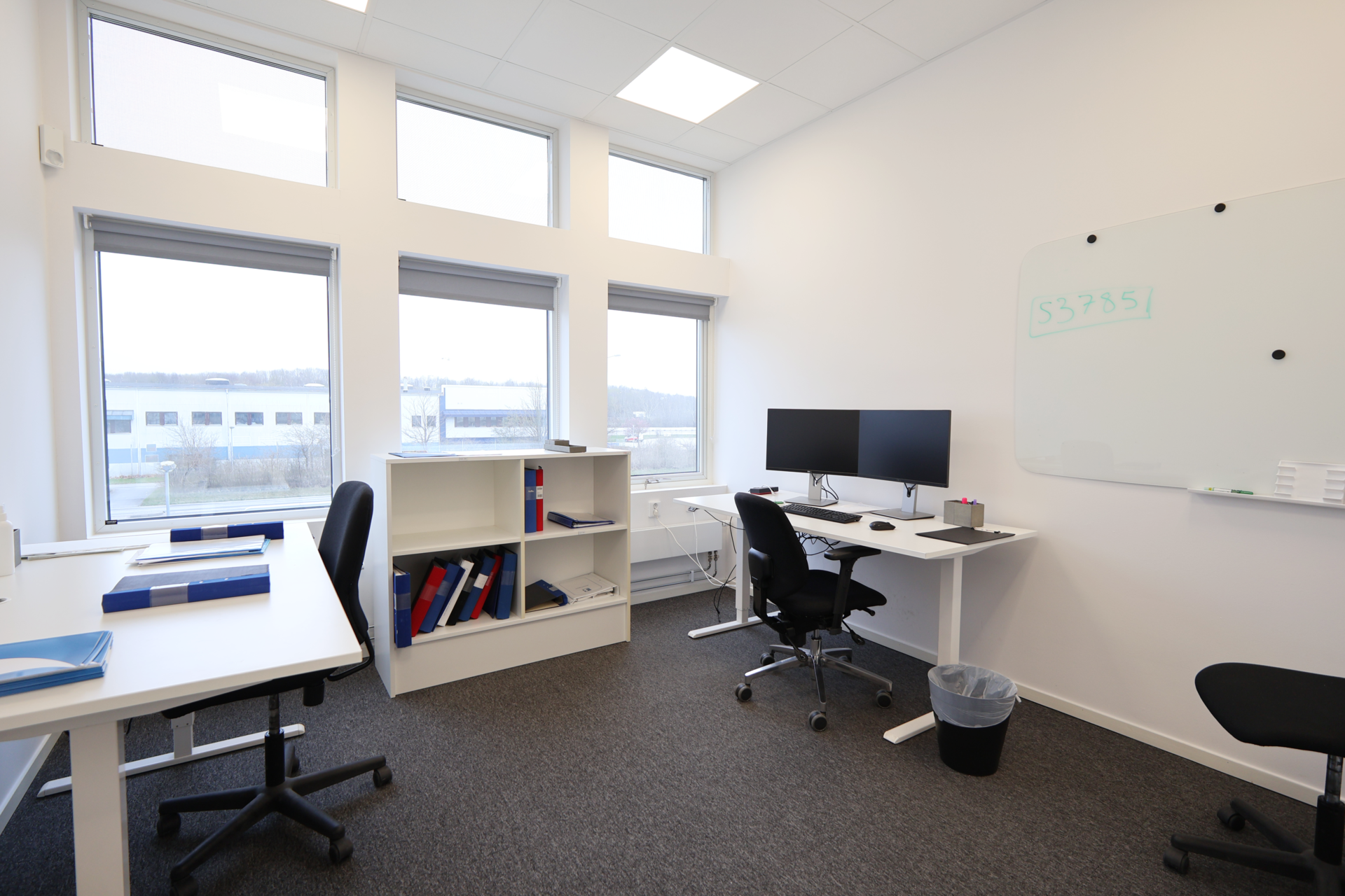 Ovanvåningen omfattar ytterligare 167 kvm kontorsyta – ljusa och funktionella utrymmen som passar utmärkt för arbetsplatser, mötesrum eller showroom.