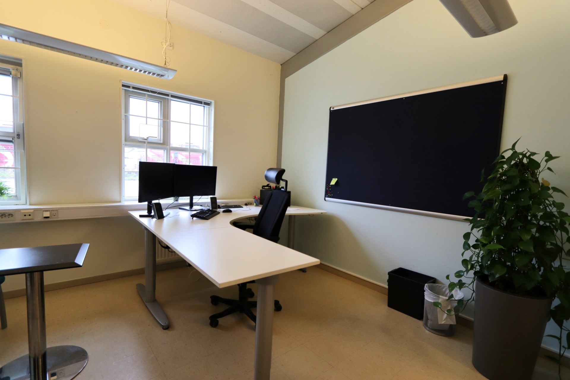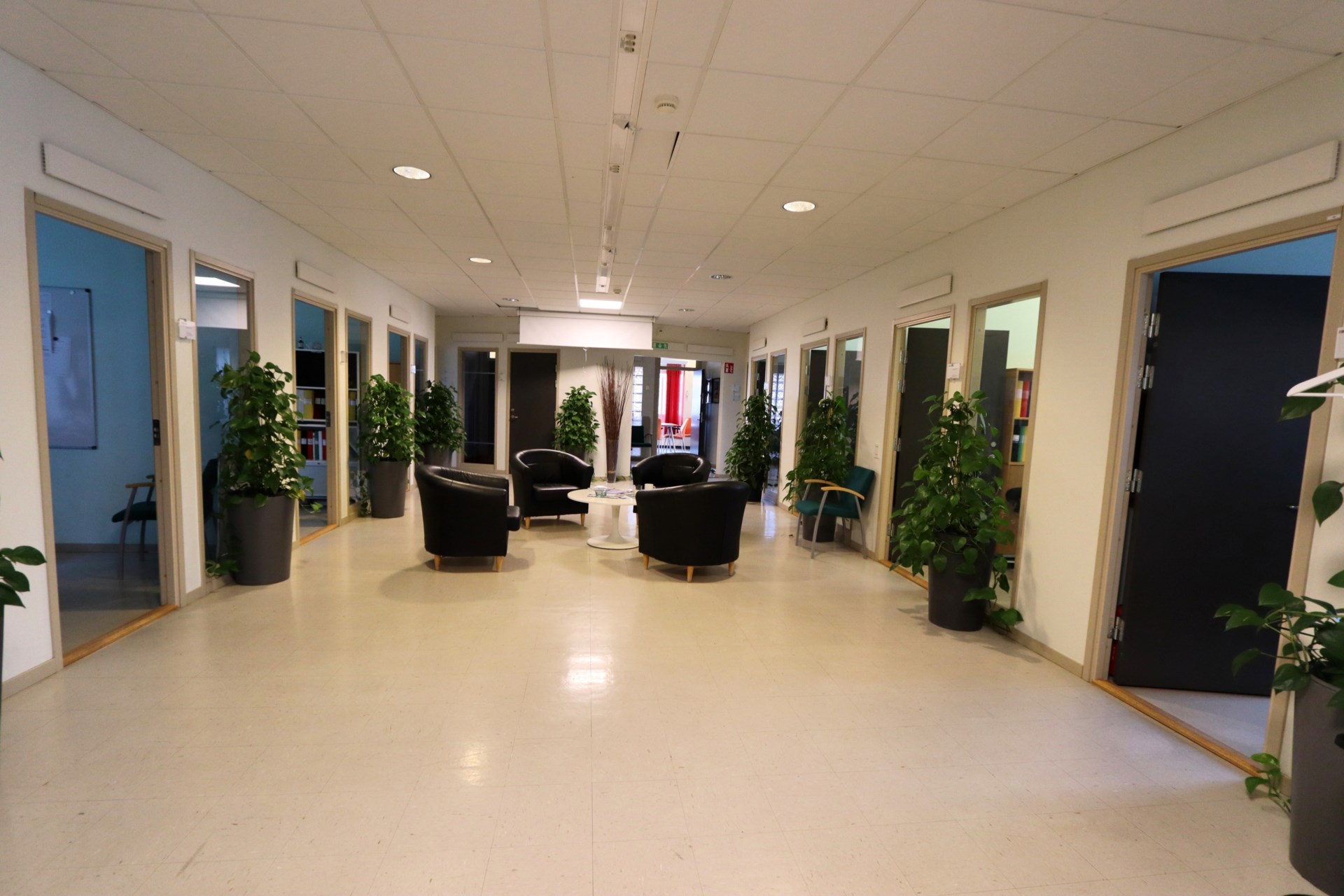 Kontorsdelen är ljus och rymlig, med en genomtänkt planlösning som rymmer både öppna arbetsytor och flera separata kontorsrum. Här finns även konferensrum, pentry och trivsamma pausutrymmen. Generösa fönsterpartier släpper in rikligt med dagsljus och skapar en behaglig arbetsmiljö. Lokalerna är flexibla och kan enkelt anpassas efter olika behov.
